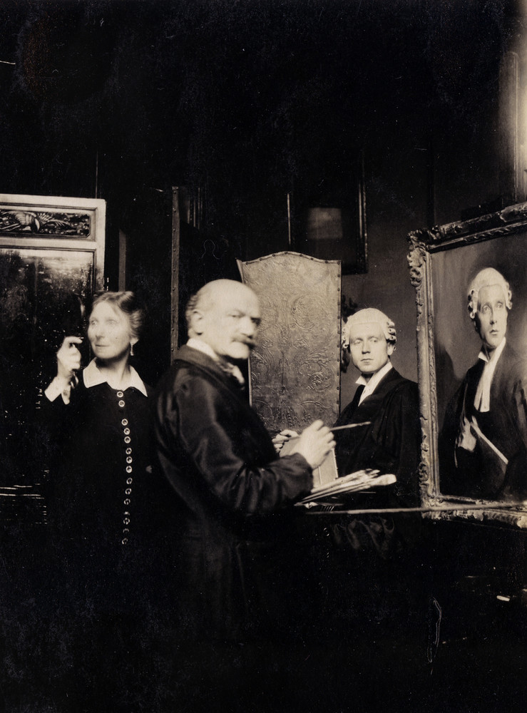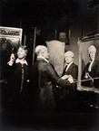 • 1929 Philip de László painting Paul de Laszlo's portrait, Paul sitting and Lucy de László holding up a mirror to look at the portrait