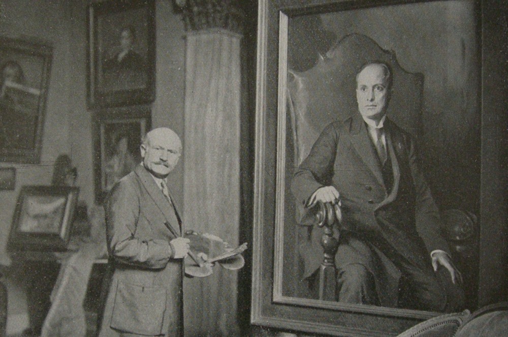 • 1923 de László completing his portrait of Benito Mussolini in his studio at 3 Fitzjohn's Avenue