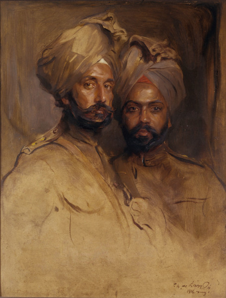 Previous See list Next Singh, Two Sikh Cavalry Officers: Risaldar Jagat and Risaldar Man Singh Roy Fox Fine Art Photography © de Laszlo Foundation Singh, Two Sikh Cavalry Officers: Risaldar Jagat and Risaldar Man Singh 1916 Painting Oil on board 90 x 70 cm (35.43 x 27.56 in.) P. A. de László / 1916. May 1 Collection Private Collection Close
