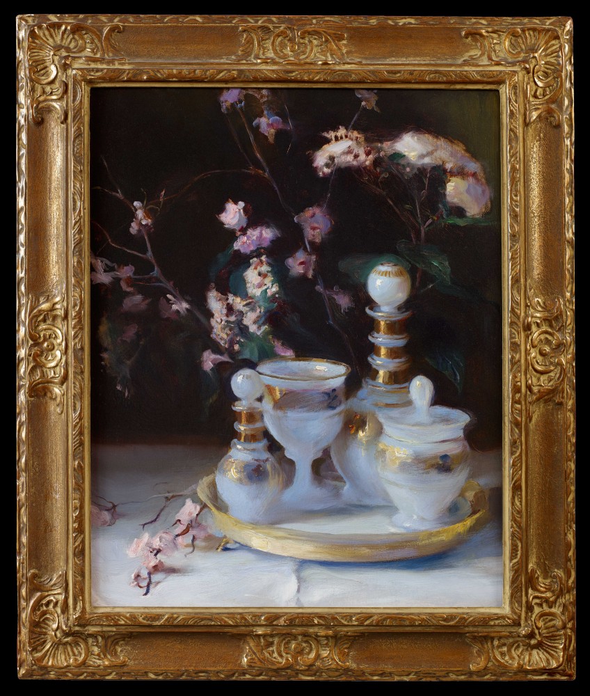 Previous See list Next Still Life: A Verre Opaline Absinthe Set on a Tray on a Table Covered with Branches of Pink Flowers and Cream-Yellow Roses Ellen McDermott © de Laszlo Foundation Still Life: A Verre Opaline Absinthe Set on a Tray on a Table Covered with Branches of Pink Flowers and Cream-Yellow Roses 1937 Painting Oil on canvasboard 51 x 41 cm (20.08 x 16.14 in.) Close