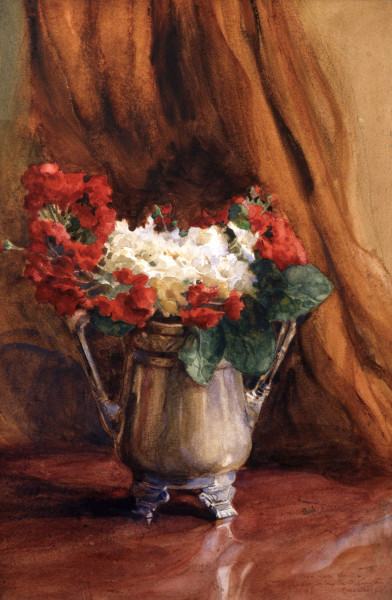 Previous See list Next Still Life: Red Geraniums, White Primula and Cyclamen Leaves, in a Two-handled Silver Tankard © de Laszlo Foundation Still Life: Red Geraniums, White Primula and Cyclamen Leaves, in a Two-handled Silver Tankard 1918 Watercolour Watercolour on paper 52.4 x 35.3 cm (20.63 x 13.90 in.) To dear Lucy - … / The first of May in Islington / 1918 P.A. de László Collection Private Collection Close