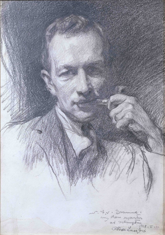 ‘Madame G’ and the accusations of espionage levelled at de László had failed to impress and in the end, the MI5 evidence was not used in the denaturalisation proceedings which followed in 1919. In November 1917, after seven weeks in severe conditions at Brixton, he successfully appealed against his incarceration there and was moved to the old Islington Workhouse for the next seven months. Here he was treated rather better and was permitted to draw and paint in watercolour. He became friends with the industrialist Theodore Kittel and the lawyer Friedrich Braune, both of whom he presented with a portrait drawing. Islington camp in Cornwallis Road, Holloway was commanded by Robert Luck and held ‘other naturalised Britons’ and enemy aliens with British wives. On 5 September 1916, it numbered 81 prisoners under 50 and 28 Germans plus another five of unspecified nationality. De László would have seen Hankinson there, as he was a permitted prison visitor. Those interned were from a variety of professions including bakers, waiters, barbers, butchers, tailors and clerks. There was just one Hungarian. This was possibly ‘J Adler.’[9]