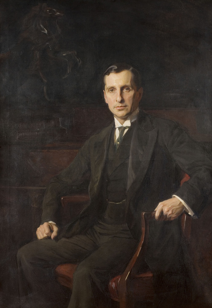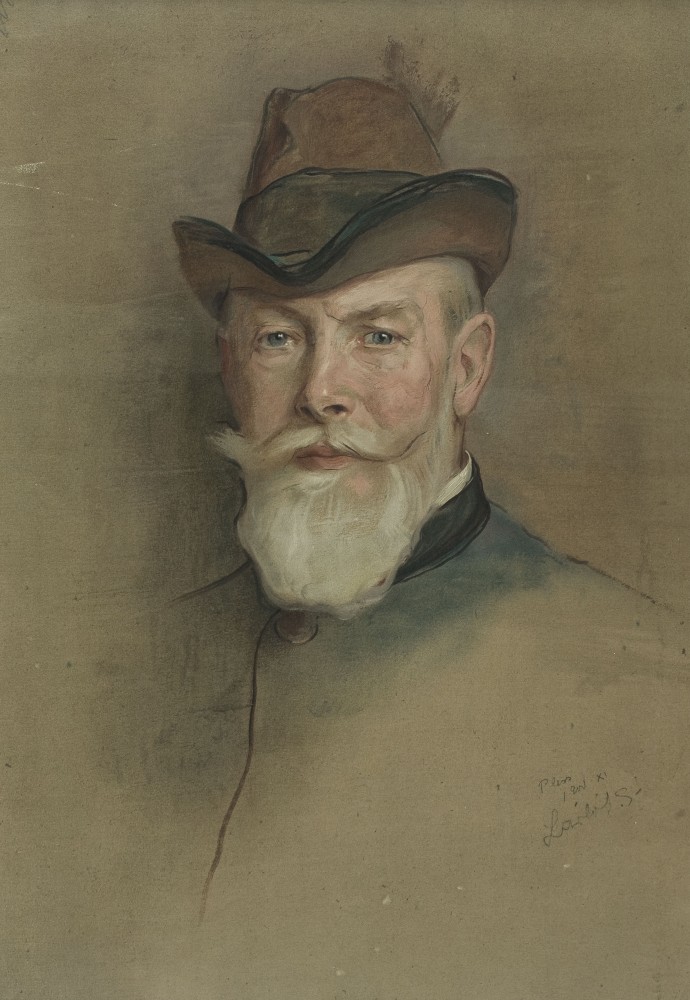 De László was born Fülöp Laub in Budapest on 30 April 1869, the son of a failed and impoverished tailor. He was forced to leave school at the age of nine and took many apprenticeships to support his family. By dint of hard work and huge talent he was admitted to the Academy of Arts. He later studied in Munich and Paris. In 1892 he met Lucy Guinness from the banking branch of the family. Through the encouragement and patronage of Elek de Lippich, a member of the Hungarian gentry who was the Secretary to the Fine Arts Department of the Ministry of Education, de László was convinced to convert to Catholicism and ‘Magyarise’ his name. Lippich helped him secure his first important commissions as well: the Prime Minister Sándor Weckerle and Prince Ferdinand of Bulgaria and his wife Marie-Louise of Bourbon Parma.[27] Those first royal commissions led to a plethora of others: the Grand Duke of Weimar, the Emperor Franz Joseph, the German Empress Augusta Victoria, Pope Leo XIII, Edward VII and the Kaiser. Finally, in 1898, he gained permission to marry his beloved Lucy. Doubts about his unsuitability as a match for a well-born Protestant Irish woman would have been mitigated by his considerable earnings by the time of their marriage in 1900 and by his elevation to the hereditary nobility of Hungary by the Emperor in 1912.