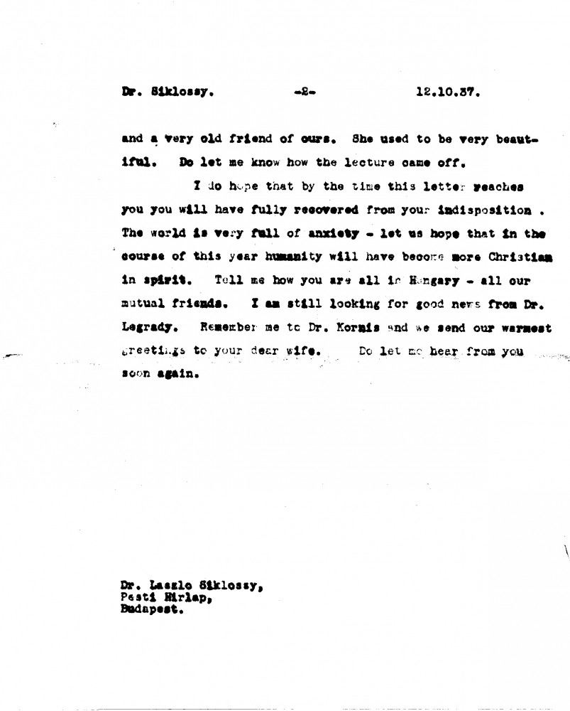 De László thanks Siklóssy for the photographs taken at Petworth, and shares updates on his health and studio work. Mentions a lecture given by the Duchess of Atholl in Budapest.