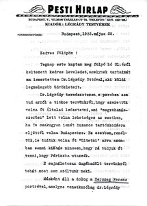 Letter from Dr László Siklóssy to de László, Siklóssy Coupures Album, 138-0021