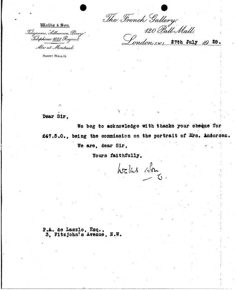 Acknowledgement of receipt of commission for Mrs Andorsen's portrait [3443] (see related item DLA107-0134).