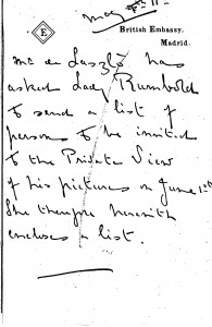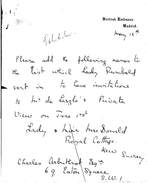 Additional individuals Lady Rumbold wishes to be invited to the private view of de László's exhibition (French Gallery, 1927).