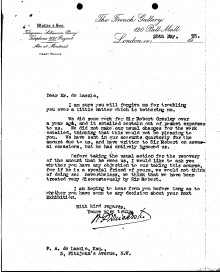 The Archive Filter search More options DLA number submit Date All 1892 1893 1894 1895 1896 1897 1898 1899 1900 1901 1902 1903 1904 1905 1906 1907 1908 1909 1910 1911 1912 1913 1914 1915 1916 1917 1918 1919 1920 1921 1922 1923 1924 1925 1926 1927 1928 1929 1930 1931 1932 1933 1934 1935 1936 1937 1986 2016 Sender / Creator All “Árpád” Cooperative Society (2) Aberconway, Charles Benjamin Bright McLaren, 1st Baron (1850 - 1934) (5) Acton of Aldenham, Richard Maximilian Lyon-Dalberg-Acton, 2nd Baron (1870 - 1924) (1) Aczél, Madame Edward [née Anny, surname unknown] (1) Agen, Boyer d' (1857 - 1945) (3) Agnew, William Lockett (1858 - 1918) (2) Ahlefeldt-Laurvig, Count Preben Ferdinand (1872 - 1946) (1) Aiken, William (1880-1950) (2) Ainger, Arthur Campbell (1841-1919) (1) Ainsworth, J.S. (1) Airlie, Mabell Ogilvy, Countess of [née Lady Mabell Frances Elizabeth Gore]; wife of 11th Earl (1866 - 1956) (1) Albemarle, Arnold Allan Cecil Keppel, 8th Earl of (1858 - 1942) (4) Albemarle, Gertrude Keppel, Countess of [née Lady Gertrude Lucia Egerton]; wife of 8th Earl (1861 - 1943) (1) Alexander, Mrs John White [née Elizabeth Alexander] (1) Alfred, G. (4) Allez, Mrs Jacques [née Mary Astor Paul; other married name Mrs Charles A. Munn] (1889 - 1950) (4) Almásy, László (1869 - 1936) (1) Amshewitz, John Henry (1882 - 1942) (6) Andrassy de Csíkszentkirály et Krasznahorka the Younger, Count Gyula (1860 - 1929) (1) Annesley, Priscilla Annesley, Countess of [née Priscilla Cecilia Armitage Moore]; wife of 5th Earl (1892 - 1941) (1) Anson, Sir William Reynell, 3rd Baronet (1843 - 1914) (1) Anthony, Geo. Hy. (1) Apponyi de Nagyappony, Count Albert (1846 - 1933) (1) Apsley, Allen Algernon Bathurst, Lord (1895 - 1942) (1) Aramon, Rita D´ (1) Armstrong, Ronald (1) Armstrong, Sir Walter (1850 - 1918) (1) Arti et Amicitiae (1) Asquith, Lady Cynthia Mary Evelyn [nee Charteris] (1887-1960) (1) Astley, Mrs Philip [née Madeleine Carroll; other married names Mrs Sterling Hayden, Mrs Henri Lavorel and Mrs Andrew Heiskell] (1906 - 1987) (1) Astor of Hever, Lady [née Lady Violet Mary Elliot-Murray-Kynynmound; other married name Lady Charles Petty-Fitzmaurice] (1889 - 1965) (1) Athlone, Princess Alice of [née Princess Alice of Albany]; wife of 1st Earl (1883 - 1981) (6) Austria, Archduchess Friedrich of [née Princess Isabella von Croÿ-Dülmen] (1856 - 1931) (3) Austria, Archduke Ludwig Viktor of (1842 - 1919) (1) Aybar, Miguel González de Castejón y Elío, I conde de (1862 - 1939) (1) B. Holden & Co. (1) Bacsich, Máté (2) Baden-Powell, Lord Robert Stephenson Smyth Baden-Powell, 1st Baron (1857 - 1941) (2) Baden, Margravine of [née Princess Theodora of Greece and Denmark]; wife of Prince Berthold (1906 - 1969) (1) Baeyens, Baronne Marcel [née Suzanne Desmons] (1884 - 1949) (6) Bailey, J. R. (16) Bajza, Aladar (1) Baker, Constable Albert (1) Baldry, Alfred Lys (1858 - 1939) (42) Baldwin of Bewdley, Stanley Baldwin, 1st Earl (1867 - 1947) (1) Balfour of Dawyk, Lieutenant-Colonel Frederick Robert Stephen (1873 - 1945) (1) Balfour, Arthur James Balfour, 1st Earl of (1848 - 1930) (2) Bálint, Zoltán (1871 - 1939) (1) Balló, Ede (1859 - 1936) (10) Balló, Mrs Ede [née Margit Vámossy] (2) Balog, Elemér (1881 - 1955) (1) Balogh, Loránd Almási (1) Bankes, Mrs Walter Ralph [née Henrietta Jenny Fraser] (1871 - 1953) (1) Barbour, Doctor Alexander Hugh Freeland (1856 - 1927) (1) Barclays Bank Ltd. (1) Bárczy de Bárcziháza, István (1882 - 1952) (10) Bárczy de Bárcziháza, Madame István [née Edit Luczenbacher de Szob] (1888 - 1973) (2) Bárdossy, László (1890 - 1946) (2) Baring, Lady Ulrica [née Lady Ulrica Dunscombe] (1875-1935); wife of Brigadier-General the Hon. Everard Baring (1875 - 1935) (1) Barnaby, J. (3) Barratt, John Arthur (1857-1944) (1) Bath, Thomas Henry Thynne, 5th Marquess of (1862 - 1946) (1) Bathurst, C. J. (1) Bathurst, Countess [née Lilias Margaret Frances Borthwick] (1871 - 1965) (2) Battersea, Constance Flower, Baroness [née Constance de Rothschild]; wife of 1st Baron (1843 - 1931) (3) Baumann, Gyula (1) Bayer, Ágost (1892 - 1958) (1) Beal, Boylston Adams (1865-1944) (1) Beatty, John W. (1851 - 1924) (3) Beatty, Lady [née Mino Edith Dunn; other married name Mrs Carol D. Stone] (1886 - 1952) (2) Beauclerk, Lady Alexandra 'Alix' de Vere (1878 - 1935) (1) Beddington, Mrs Claude [née Frances Ethel Homan-Mulock] (1880 - 1963) (1) Beer, Esmond Samuel de (1895 - 1990) (1) Bell, George Kennedy Allen, Bishop of Chichester (1883 - 1958) (1) Belloc Lowndes, Mrs Marie Adelaide (1868-1947) (2) Bélugou, Léon (1865 - 1934) (8) Benczúr, Mrs Gyula (1) Bendir, Arthur ( - 1957) (8) Benedek, Atilla (1) Bénédite, Léonce (1859 - 1925) (2) Bénédite, Rosa (2) Benkő, Kálmán (1) Benlliure Gil, Professor Mariano (1862 - 1947) (7) Bennett Dampier, Lieutenant Colonel William Henry (c. 1869 - 1930) (1) Benson, Mrs Robert Henry [née Evelyn Holford] (1856 - 1943) (1) Benthall, F. Bernard (1) Berényi, Gyula (1) Berkeley Wills, Gerald (1882 - 1979) (23) Berks, Hugo Reichsritter von (1841 - 1906) (1) Berzeviczy de Berzevicze et Kakaslomnicz, Albert (1853 - 1936) (1) Bevan, G. L. (1) Bihari, Mrs Sándor (1) Bilkei Gorzó, Nándor (1) Birley, Sir Oswald (1880-1952) (4) Biron von Curland, Gustav Peter Johannes, Prince (1859 - 1941) (1) Blair, G. (1) Blaschczik, Johann (1866-1936) (1) Bligh, Ada Theodosia (3) Blomfield, Sir Reginald Theodore (1856-1942) (1) Bókay, Professor János (1858 - 1937) (3) Bone, Sir Muirhead (1876-1953) (1) Boross, Jenő (1868 - 1942) (4) Boross, Samu (1) Bosdari, Count Alessandro De (1867-1929) (1) Bossányi, Ervin (1891 - 1975) (1) Bottomley, Horatio William (1860 - 1933) (3) Bourbon, Diana (1) Bourne, His Eminence Cardinal Francis Alphonsus (1861 - 1935) (1) Bowen & Mallon (1) Bowlby, Arthur Salvin (1872-1932) (1) Bowlby, Mrs Arthur Salvin [née Catherine Mary Bond] (1875 - 1943) (3) Bowlby, Mrs Edward Salvin [née Elizabeth Vans Agnew] (1854 - 1937) (1) Bowring-H