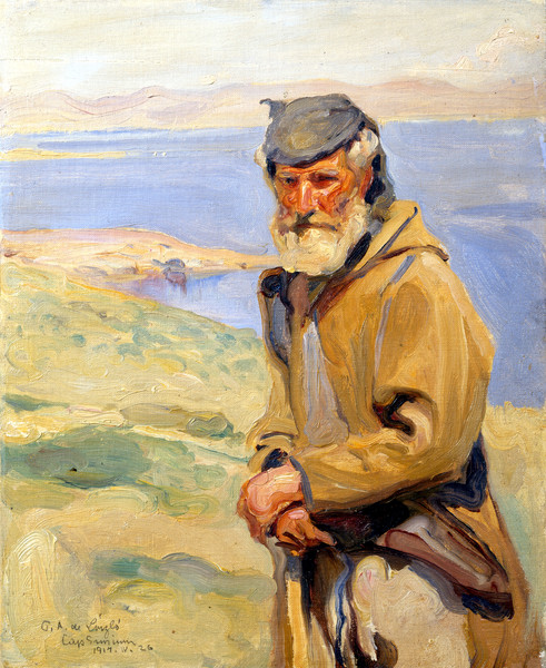 Previous See list Next Genre Picture: A Greek Fisherman Roy Fox Fine Art Photography © de Laszlo Foundation Genre Picture: A Greek Fisherman 1914 Painting Oil on canvas 41 x 32 cm (16.14 x 12.60 in.) P.A. de László / Cap Sarnium [sic] / 1914. IV.26 Collection Private Collection Close